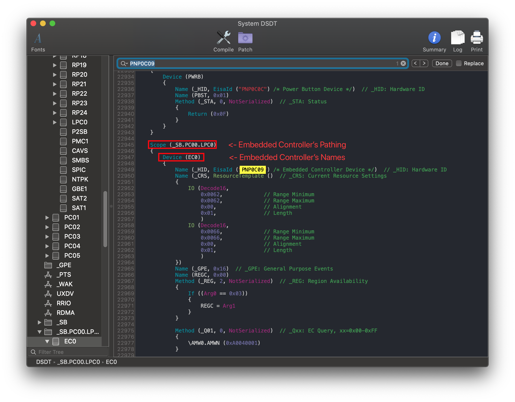 Finding the ACPI pathing is quite easy actually, first open your decompiled DSDT you got from Dumping the DSDT and Decompiling and Compiling with either MaciASL(if in macOS) or any other text editor if in Windows or Linux(VSCode has an ACPI extension (opens new window) that can also help).