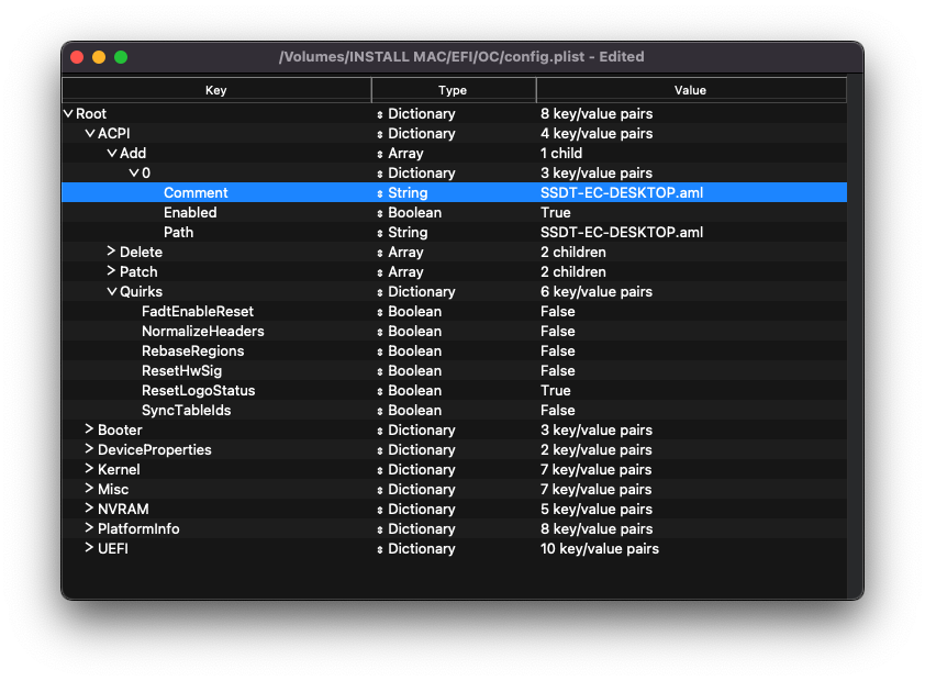 - All properties must be defined, there are no default OpenCore will fall back on so do not delete sections unless told explicitly so. If the guide doesn't mention the option, leave it at default.