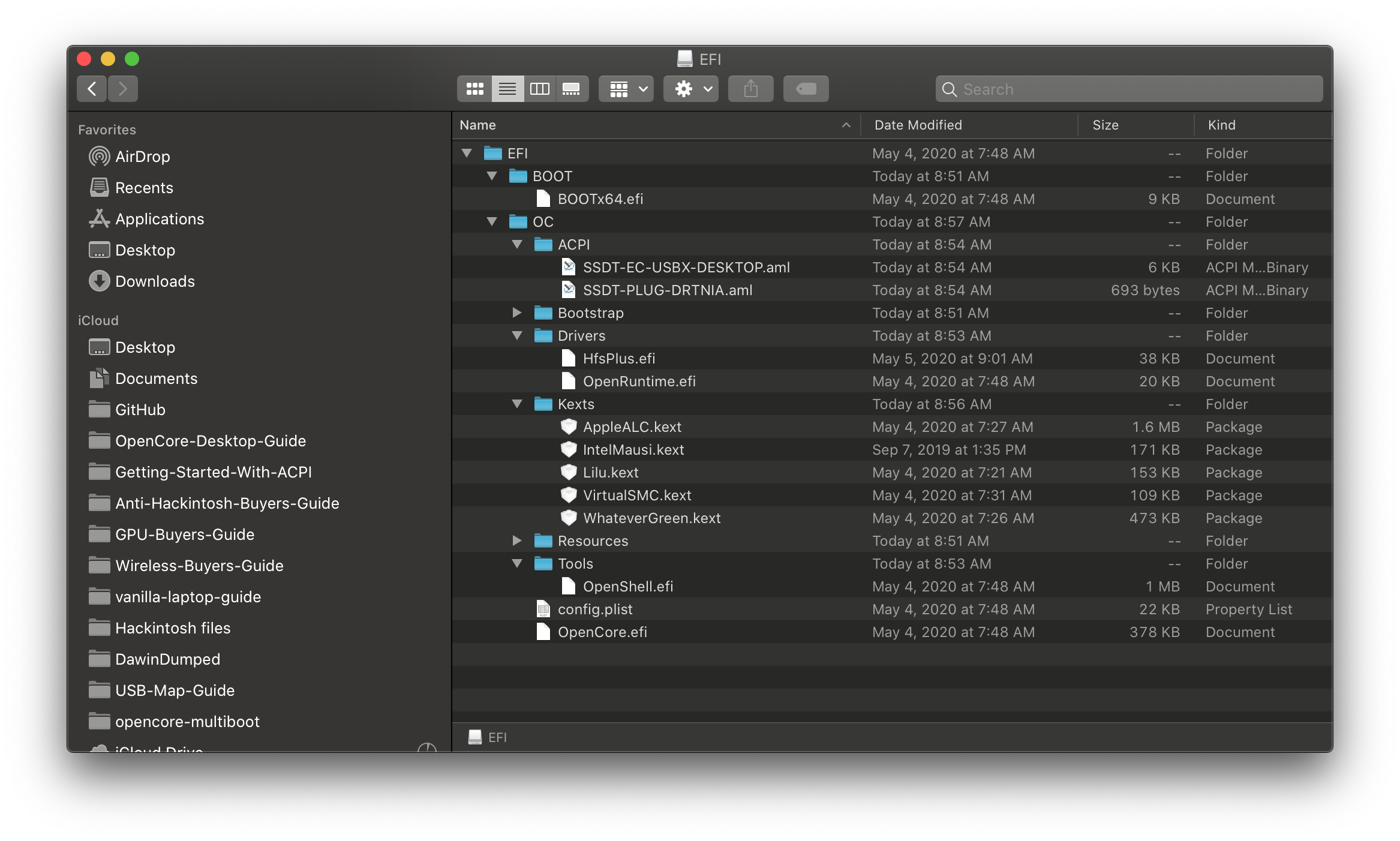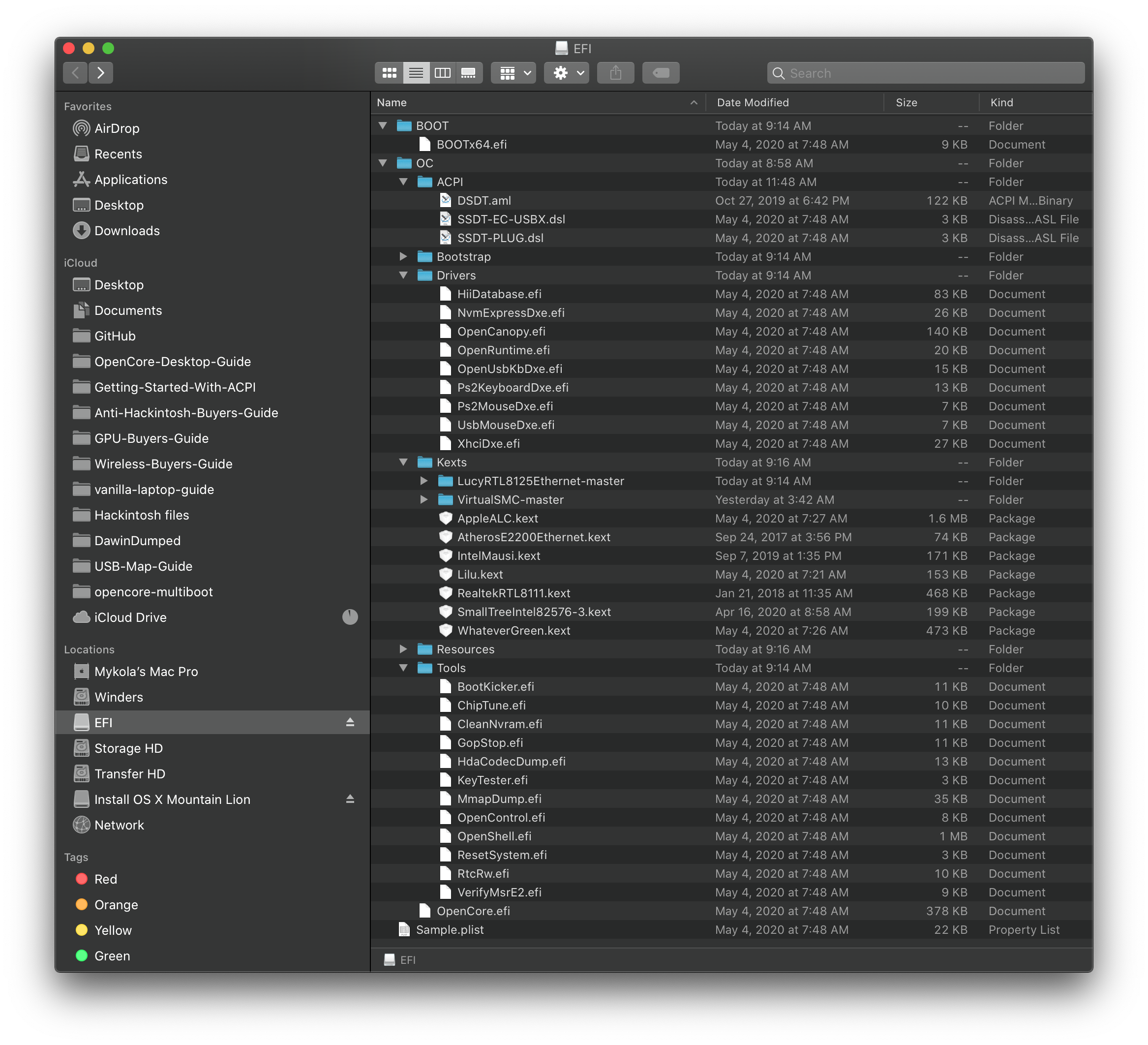 | All files in the Kexts folder end in .kext | Includes source code and folders |