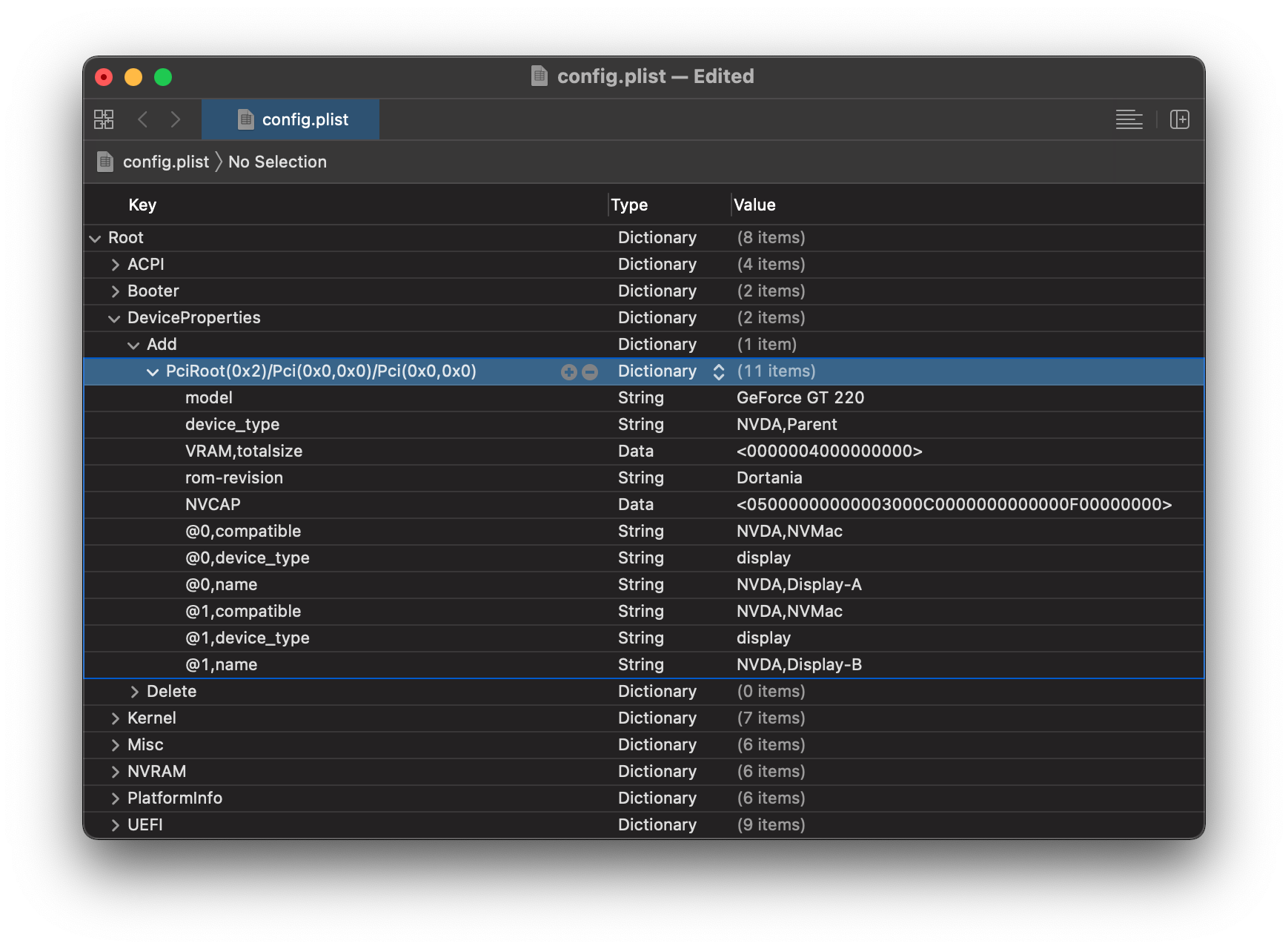 What we care about is the PciRoot section, as this is where our GPU is located and where we'll be injecting our properties: