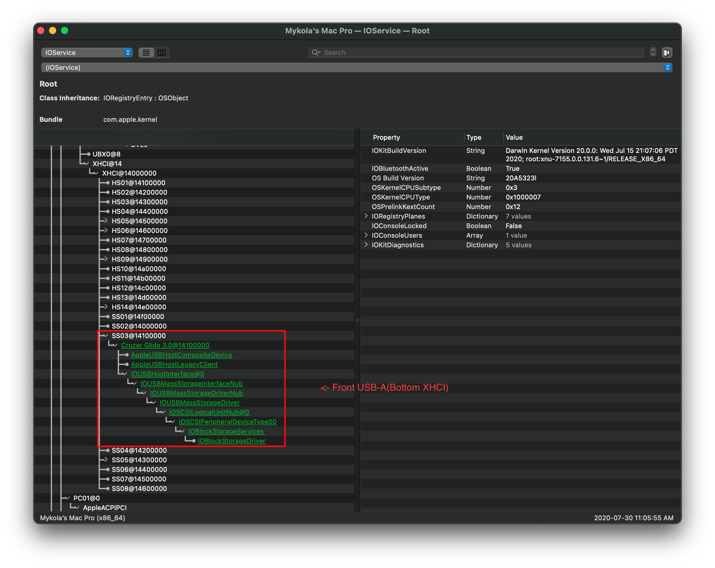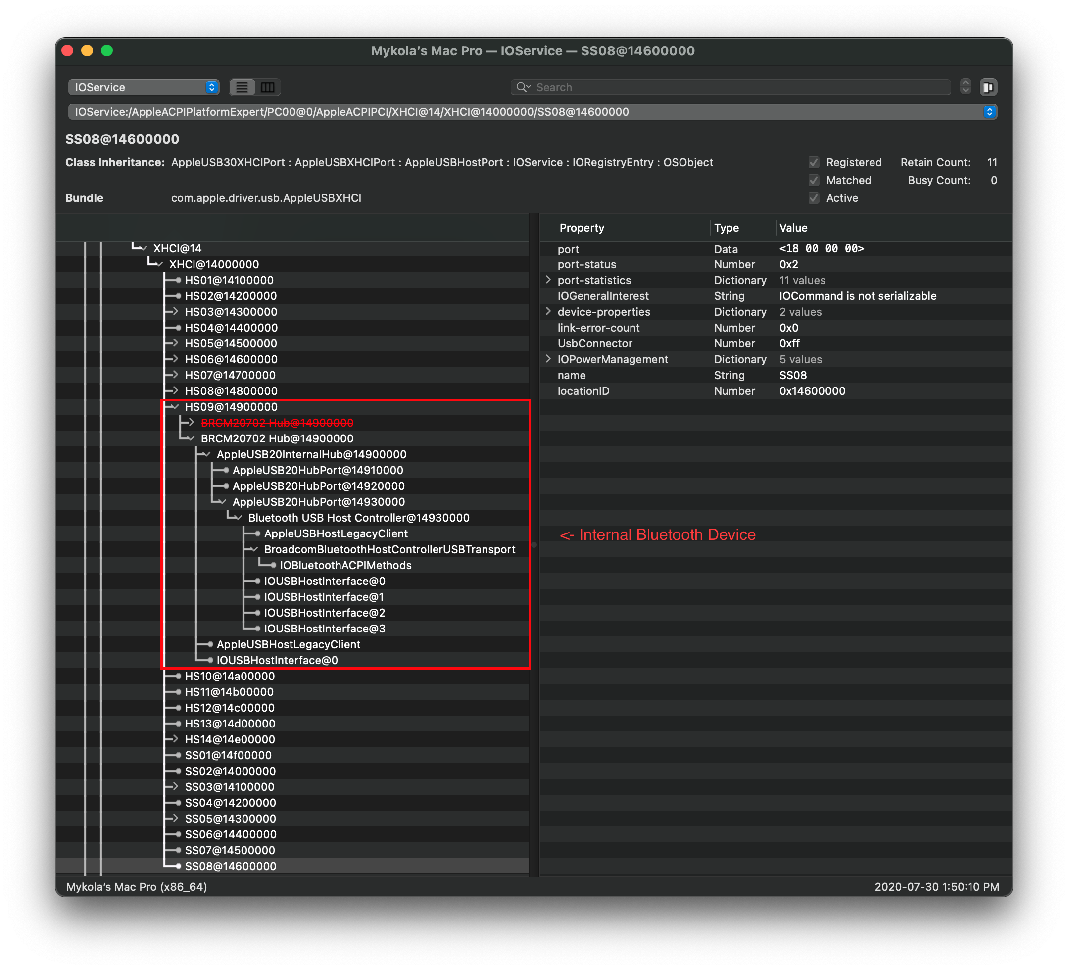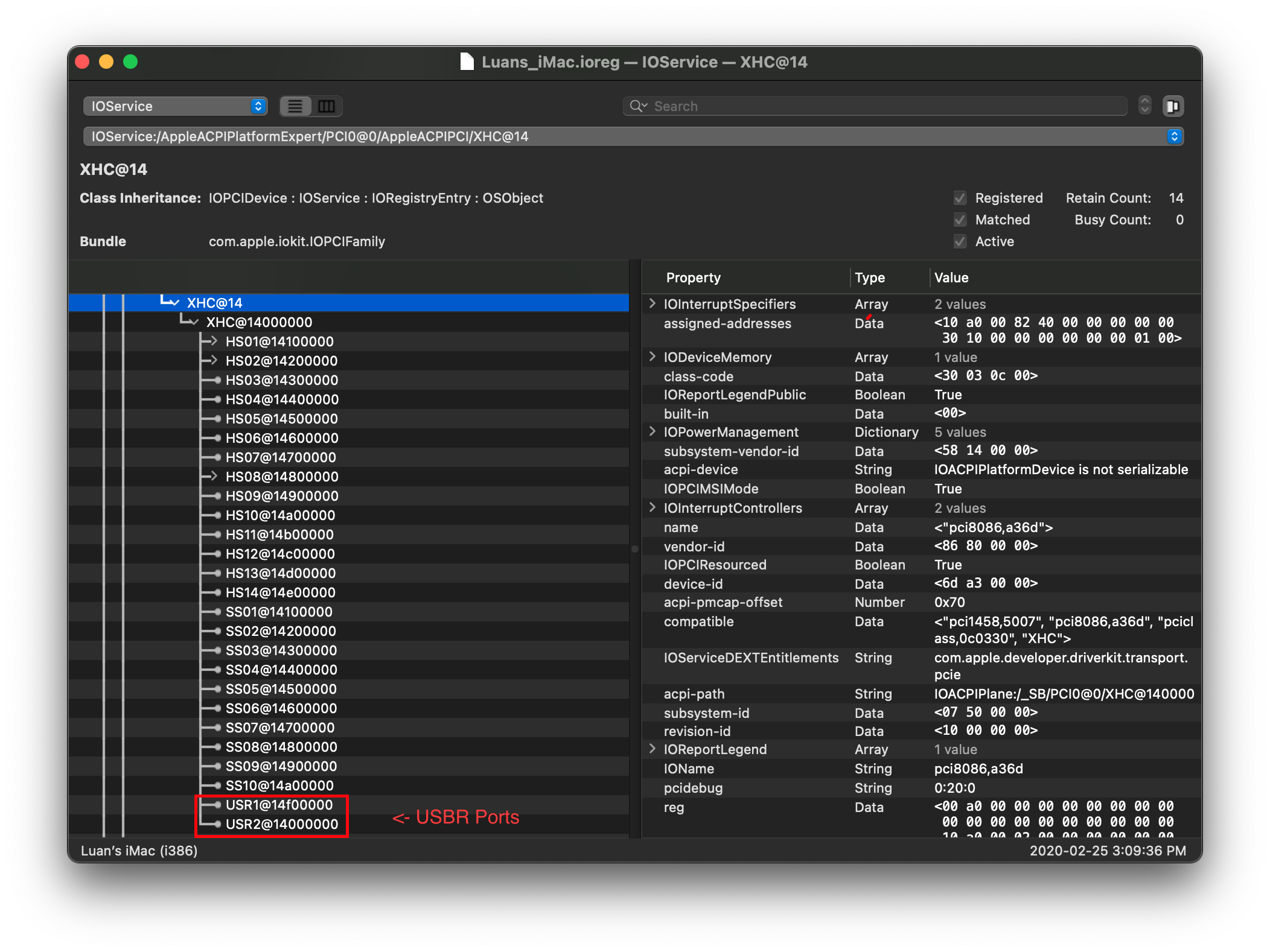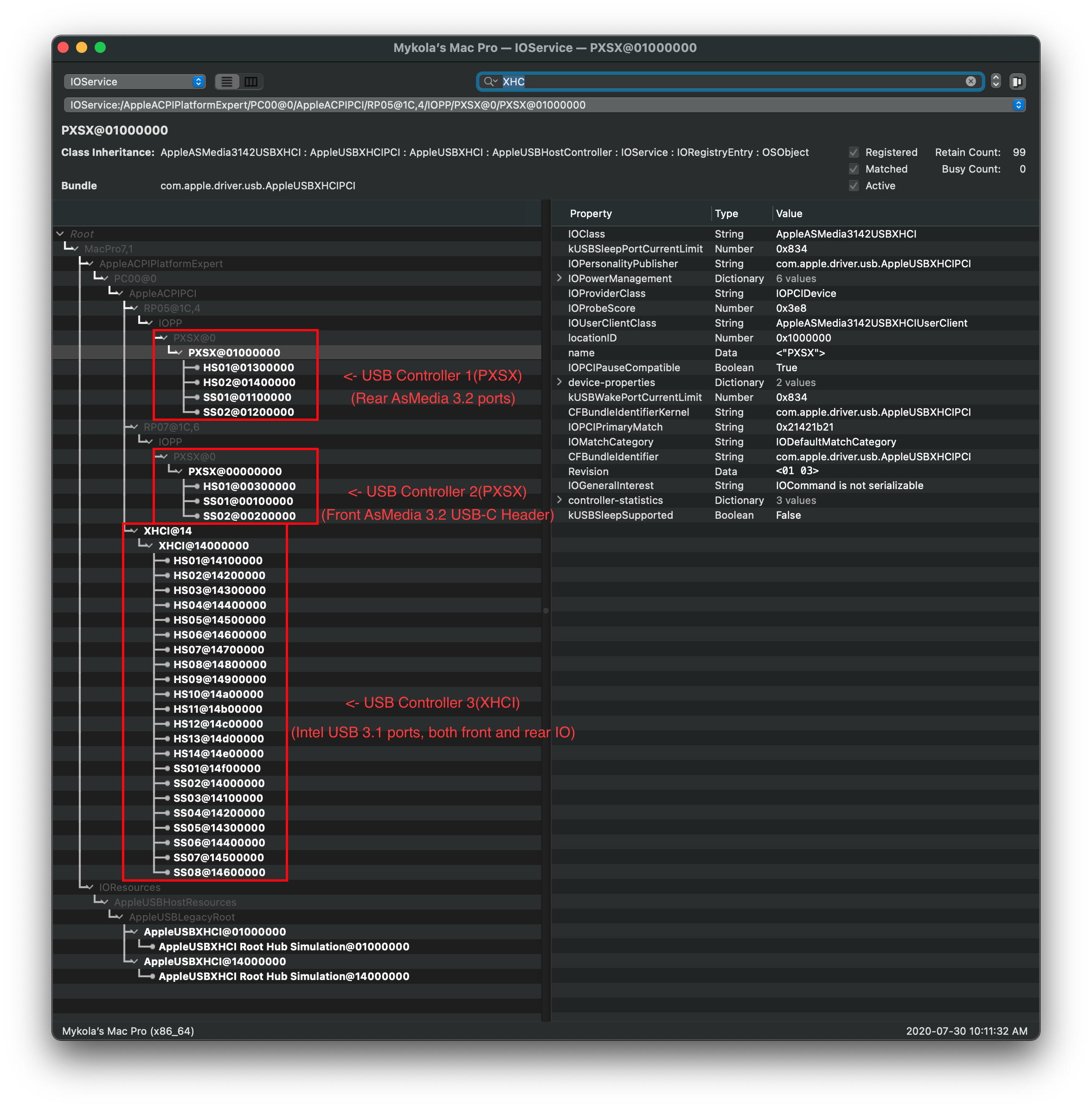 Lets open our previously downloaded IORegistryExplorer.app (opens new window) and search for our USB controller(s).