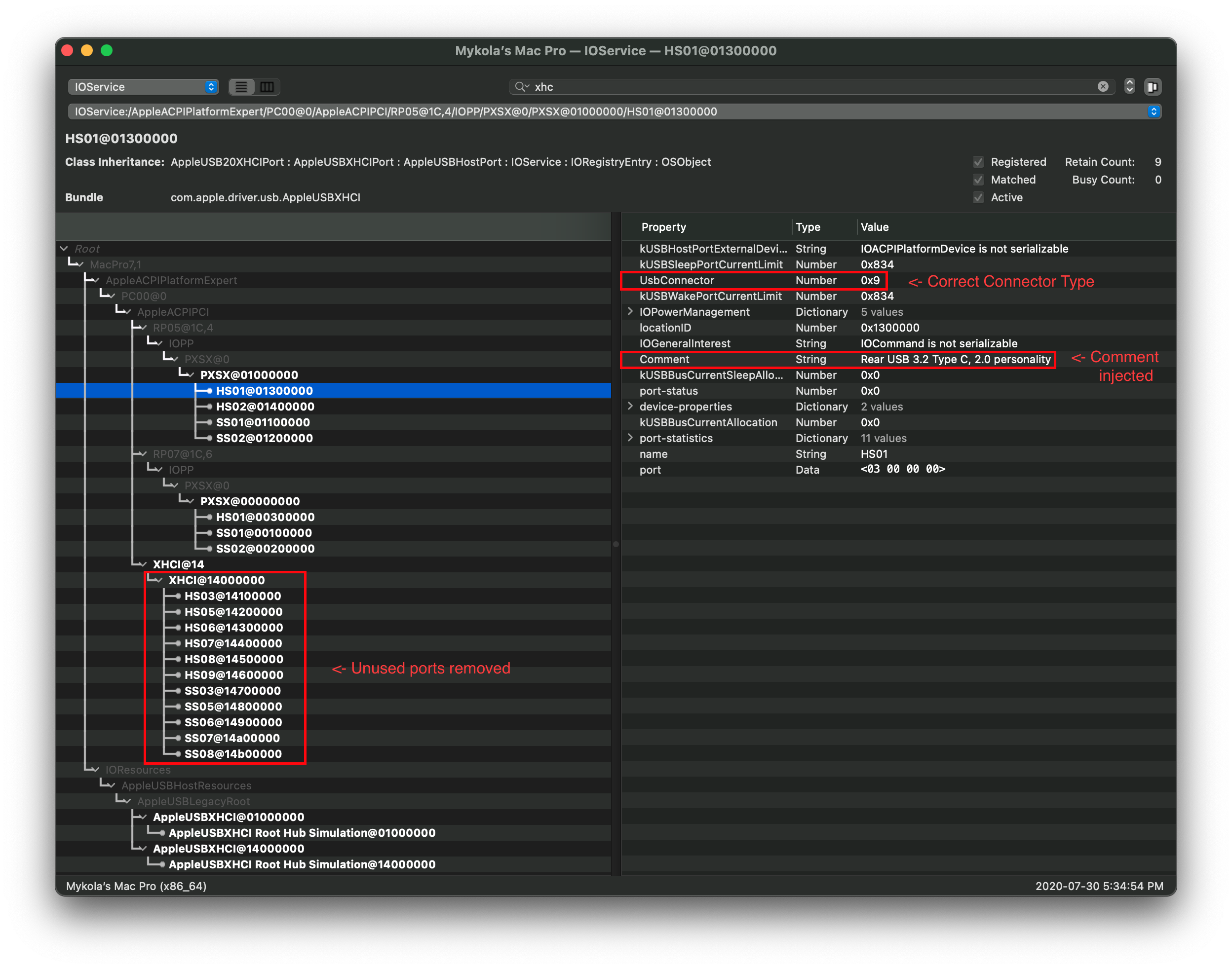 - Note: Those with AppleUSB20XHCIPort or AppleUSB30XHCIPort names for USB ports, you should choose a name easy to identify. On Intel, this is HSxx for 2.0 personalities and SSxx for 3.0 personalities