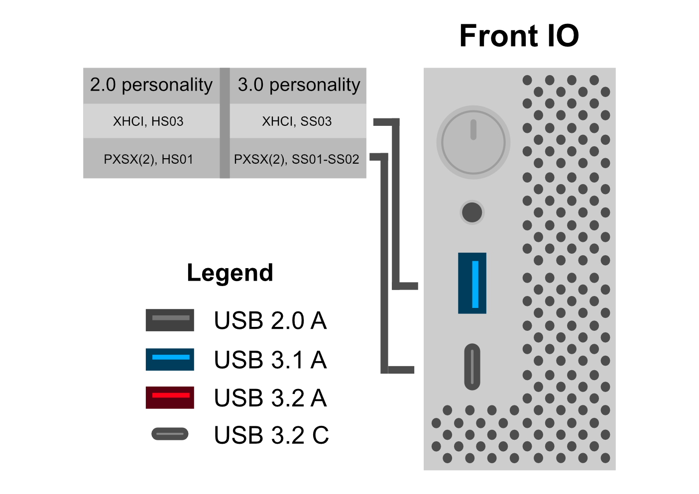 - Front 3.1 Type-A is on the XHCI(3, Bottom) Controller