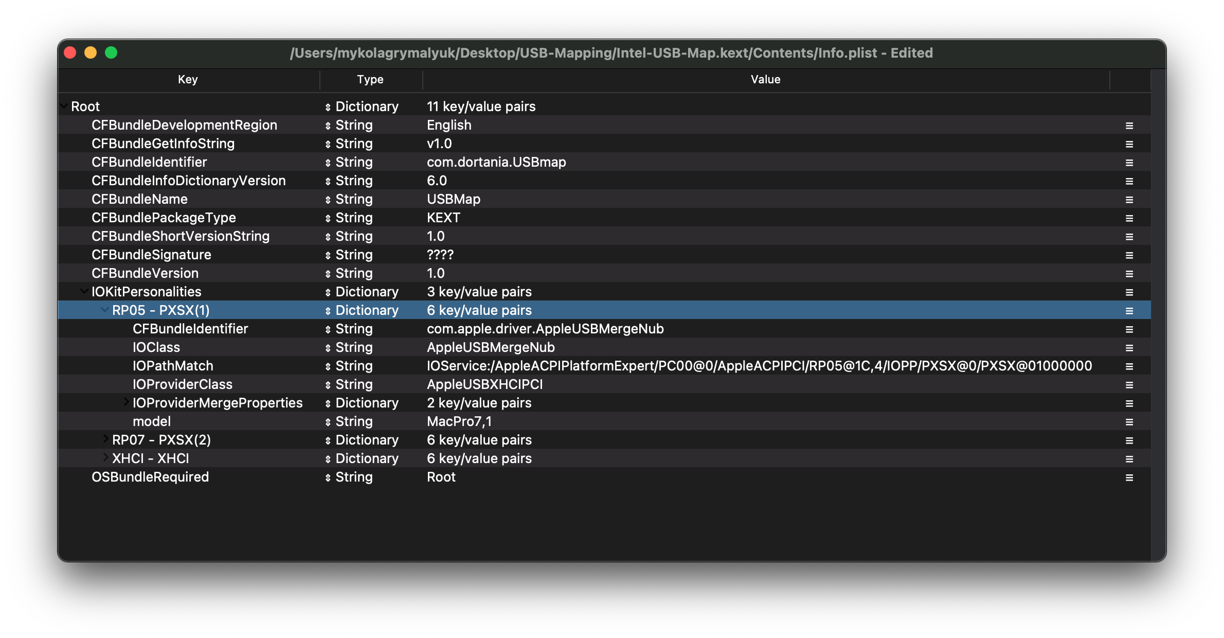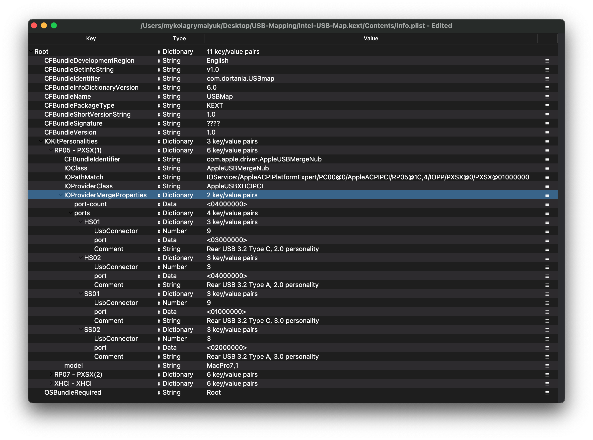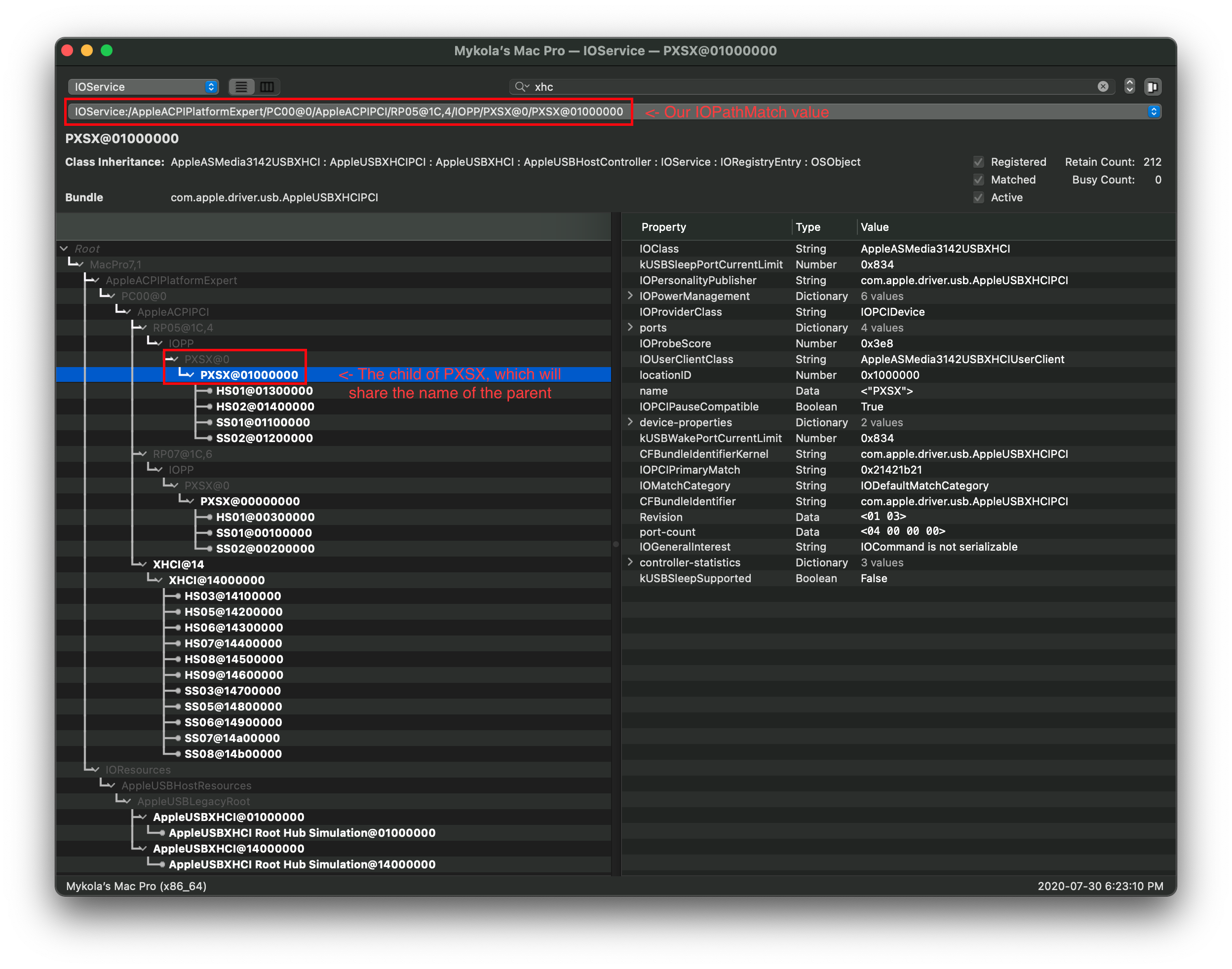 Finding IOPathMatch is super easy, first find the USB controller you want to map and then select the Root HUB(so the PXSX child with the same name as the parent, don't worry it's less confusing when you look at the image):