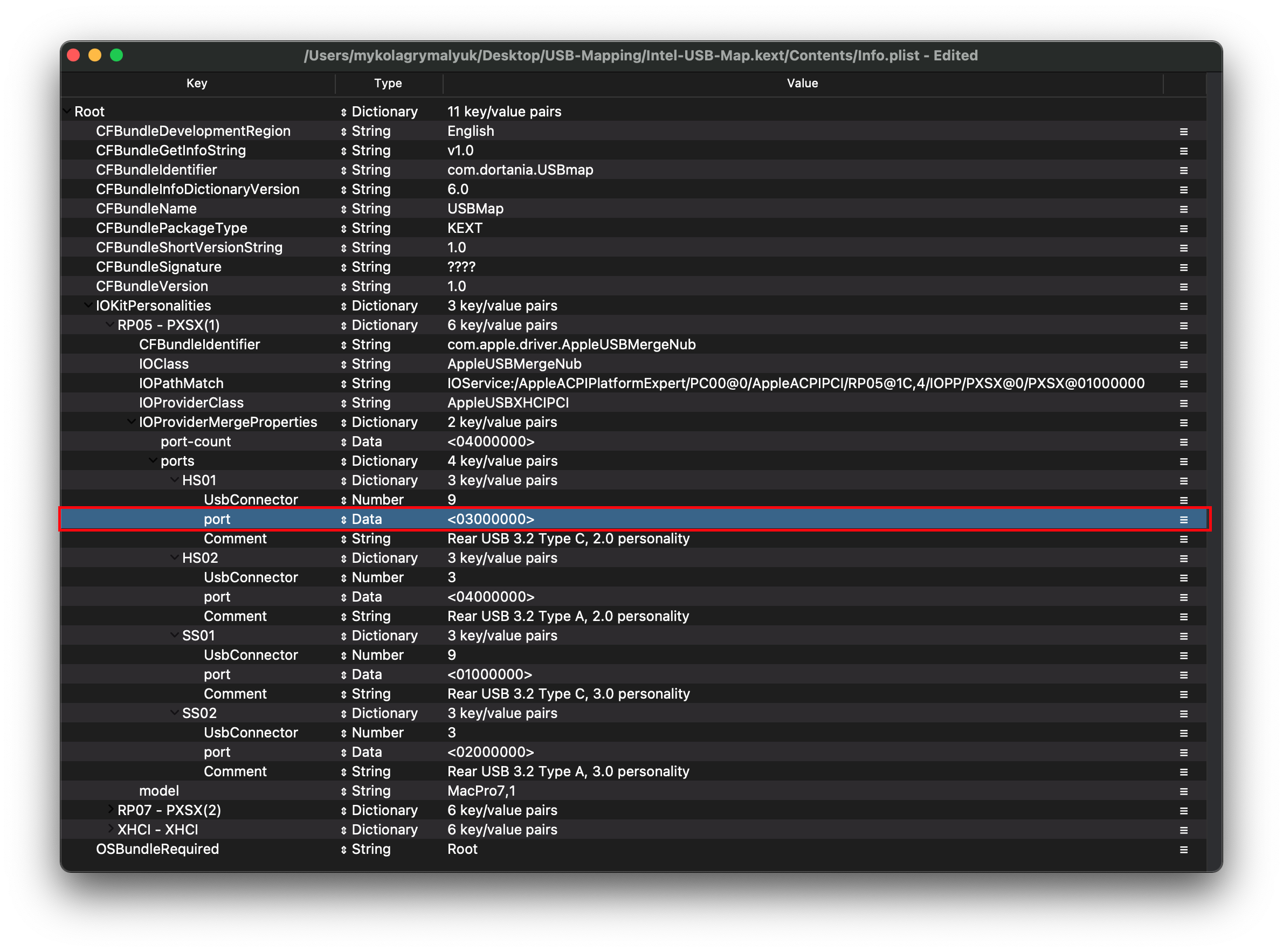 From here we get <03 00 00 00>, you can simply remove any spaces and add it to your USB map