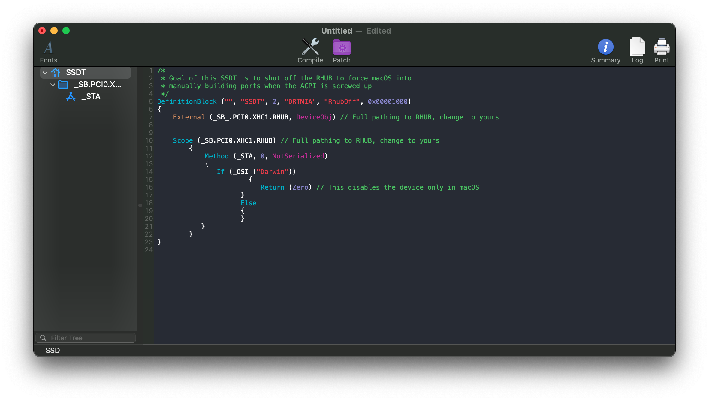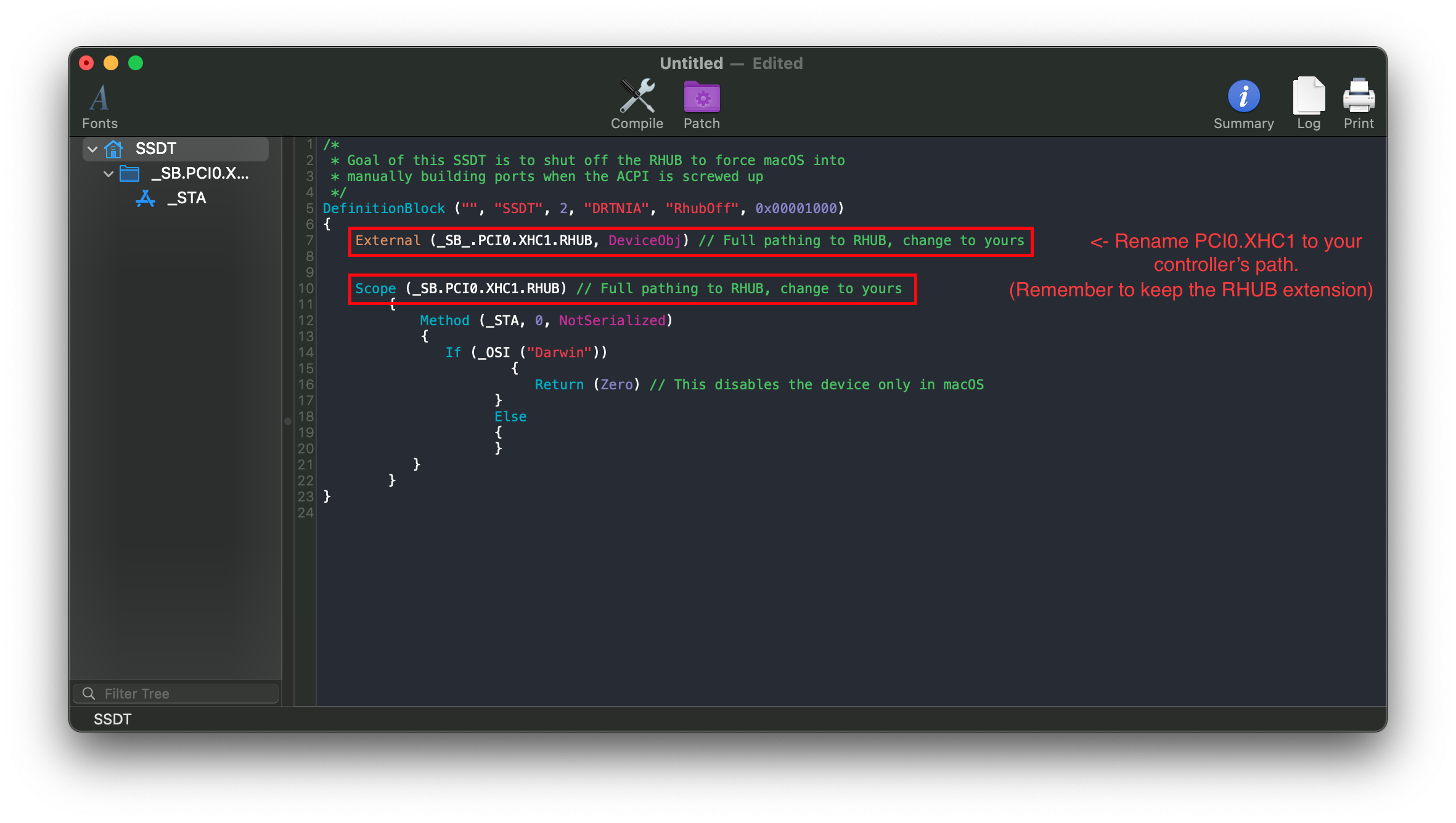 - Grab a copy of the SSDT: SSDT-RHUB.dsl (opens new window)