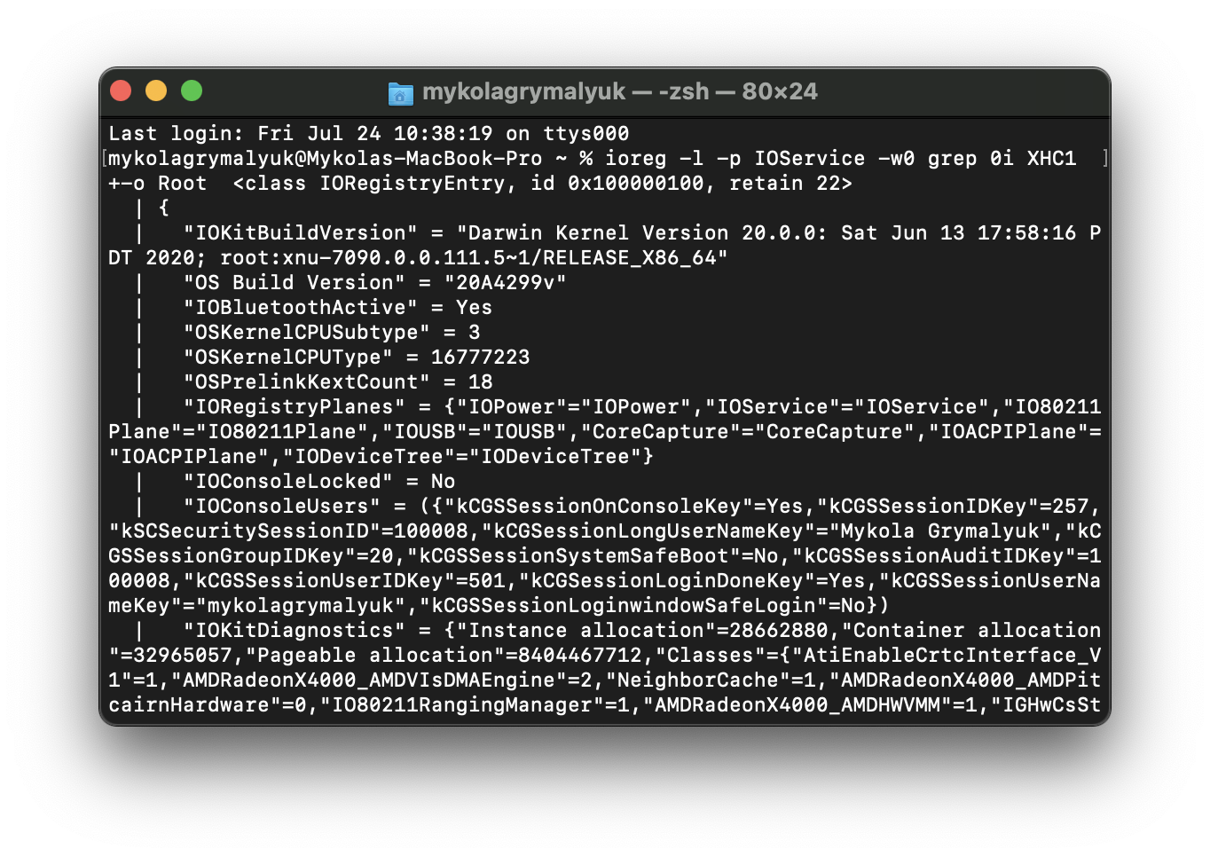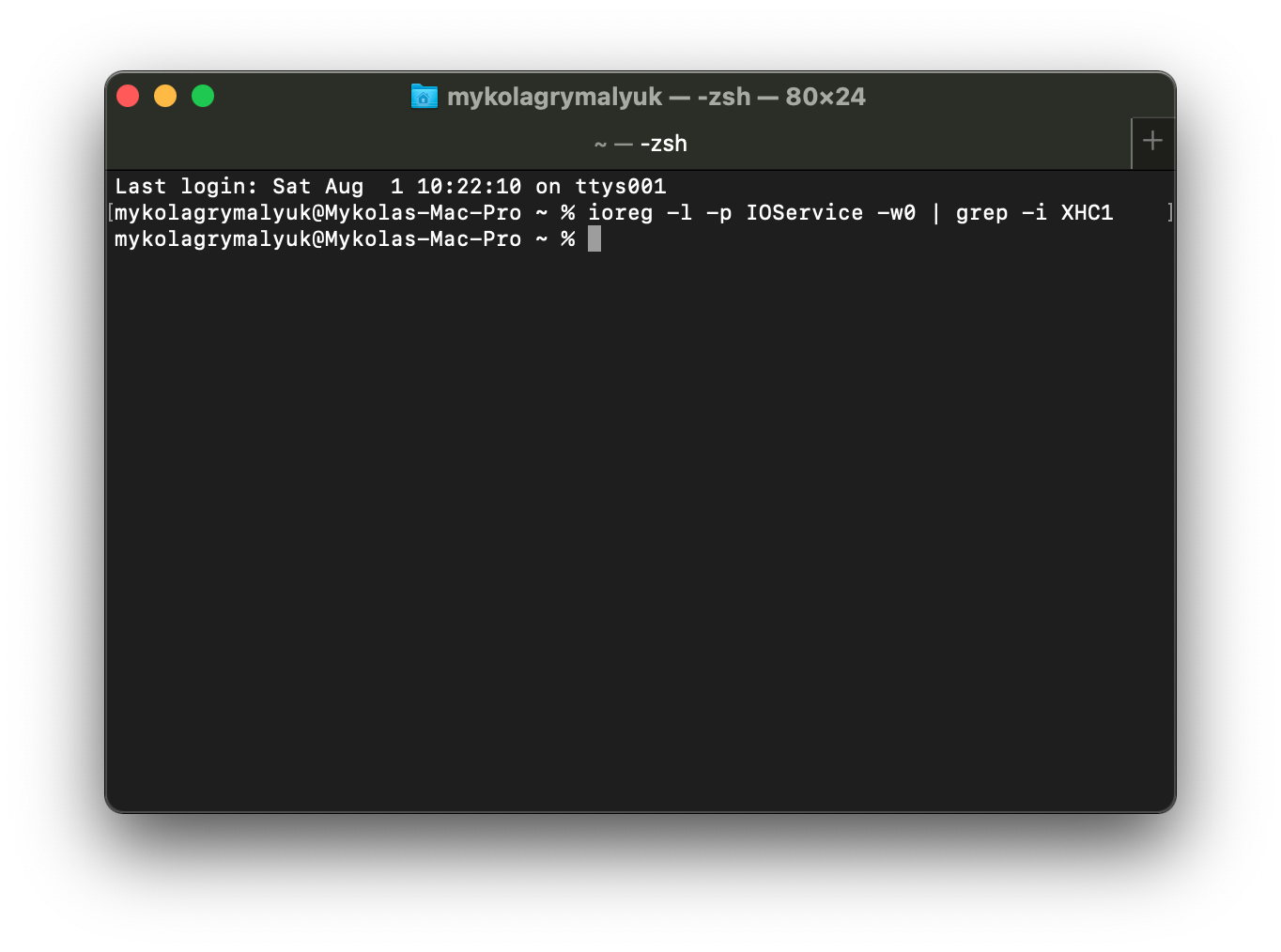 ioreg -l -p IOService -w0 | grep -i XHC1